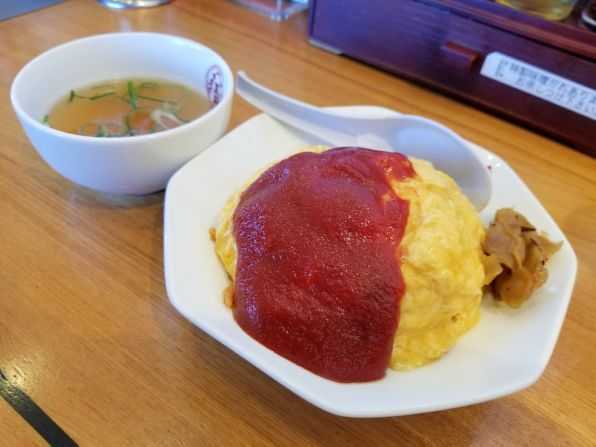 そしてその下の卵に包まれているのは、鶏肉でなく焼豚が入ったチキン!? いやケチャップライスかな??? こちらもメニューにはゴロっと書かれていますが、どちらかというとコロコロでしょう!!(笑)