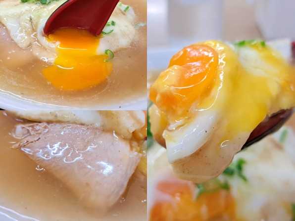 さぁ気になるお味です。。。ご飯と焼豚、目玉焼の上に、トロ~リ薄茶色の餡がかかっています、、、"中華そば"のスープベースと思われる餡で、甘くなくアッサリ系の優しい味がGOOD!!