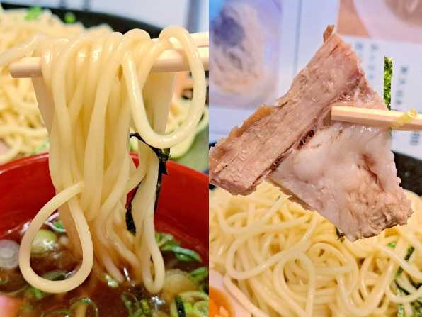 さぁ気になるお味です。。。まず麺はいつもの細目で中加水、手もみ風緩やかウェーブタイプ、、、しっかり冷やされていて、シコシコの歯ごたえがGOOD!! そしてつけタレは、鶏ガラ+魚介系の旨みがギュッと詰まった醤油味。。。
