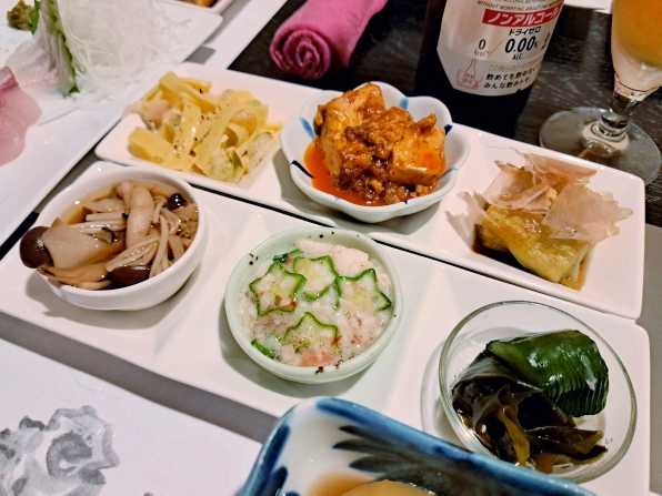 なのでアルコールは接種せず、健康的にノンアルビールです!! 料理はいつものように六種盛りから始まり、刺身や太刀巻きなど、、、そしてタンが入ったデミグラスソースタップリの、絶品ハンバーグをいただいたところで、残念ながら退席でした。。。うんうん、旨い旨い~☆