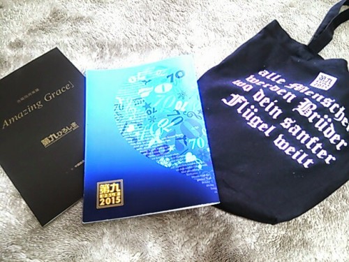 戦後70年、被爆70年の年の第九ひろしまが始まる。第一部は、夏川りみさんによる歌のステージ。・童神~ヤマトグチ~沖縄の子守歌。昨年、お母様を亡くされたマエストロへのプレゼントのようなあたたかい歌。りみさん自身も母であり、子守歌を歌い継ぐ大切さについて語っておられた。・さとうきび畑何度も繰り返される歌詞の「ざわわ」の歌い方!その多彩さにも驚きつつ~想いのこもった歌に自然と涙が流れた。・涙そうそう夏川りみさんを代表する曲。曲に出会えた感謝が伸びやかな歌声になる。・Amazing Grace「(今までは見えなかった)神の恵みがやっと見出せた」という有名な歌。沖縄の言葉で聴くと、どこか懐かしい雰囲気となる。合唱団もM先生編曲の楽譜でバックコーラスをさせていただいた。第二部は、第九。マエストロ山下さんと広島交響楽団による第1楽章~第3楽章。素晴らしい演奏。第3楽章でソリスト陣が席につかれる。紅白のソプラノ、アルトの方の美しさにため息・・・バリトンo先生にも「ガンバレー!ガンバロウ!!」と心の中で声援を送った。 第4楽章。「おぉ 友よ、この調べではない!もっと快い、歓びにみちた調べを歌いはじめよう」o先生の歌声が会場内に響きわたる。「すべての人々が兄弟になる」ベートーヴェンが共感したシラーの詩を想って歌う。第九ひろしまの本番には、独特の感覚が伴う。マエストロと、ソプラノ陣と~合唱、そして会場全体もが一体となる感じ。長野から、高知から、山口から・・・歌いに来てくれた仲間。私の初出演から、毎回会場へ足を運んでくださっている会社の先輩方。第九のご縁で今年出会った人たちにも~感謝。初出演の方々も頑張られました。そうそう、夏の体験会のとき隣の席だった方。休憩時間、蝶ネクタイ姿を遠くに見かける。初めての第九ひろしまは、どうだったかな?また会う機会があれば、聞いてみよう。歓喜の歌が、つながっていく。