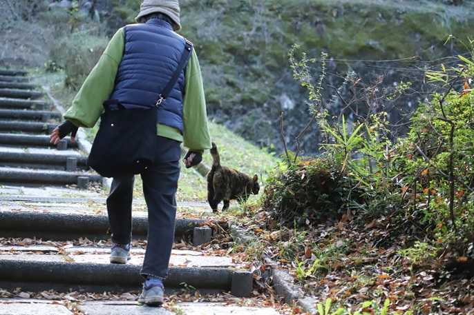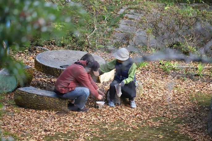 ご夫婦で いつもの場所で エサやりです。こうしていると カラスに食べられないですね。