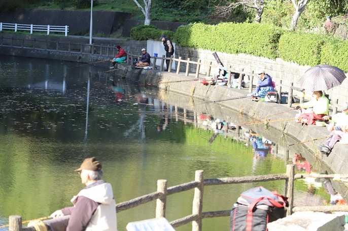一人の竿に あたりがあったようで ゆっくりと 手前に 寄せてきます。