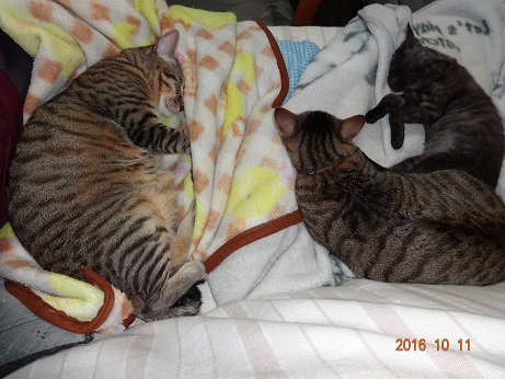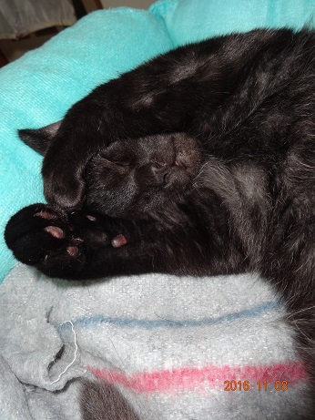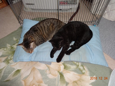 クロもすっかり家族です 写真もクロが続きましたがキロ達も元気? たっぷり寝てます。