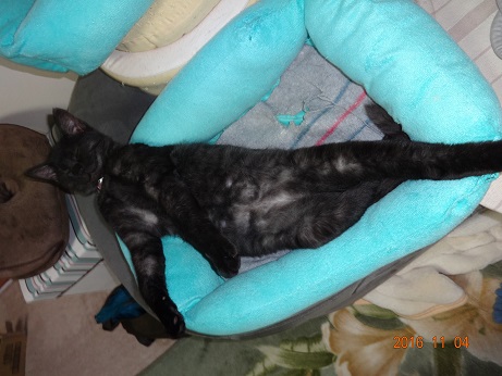 クロの顔は、顎も首も黒いので分かりにくい 毛が伸びて2重顎になったみたいに見える時もある。 起きていても目の輪郭がはっきりしないので 目を開けているのかわかりにくい(笑) 我が家に来た時の不安そうな目ではなくなった すっかり家猫になったみたい。