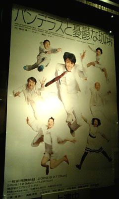 世界勃発を未然に防ぐため奔走するネゴシエーター、バンデラスの活躍を描くコメディー。福田雄一・マギーによる作・演出作品は、今はなき新宿シアターTOPSでU-1グランプリ公演第2作である「厨房」を観ました。今回は、その面白さを保ったままで大きな劇場、有名な俳優さんたちにより、スケールアップ。ストーリーは13のコントのシーンに分かれていて、それぞれのシーンはそれだけでも可笑しくて、しかもそれらはつながっていて、クライマックスに突入するという面白さ。その上、伏線まであって、オチまであるという構成が実にうまい!やはり笑いに、歌とダンスをプラスして、とにかく皆で楽しもうという心意気は、U-1グランプリと変わりません。福田雄一さんもマギーさんも本当に生真面目に笑いに取り組んでる感じが伝わってきました。パンフレットの座談会で、なれないコメディ、コントの演技に戸惑う堤さん、段田さんらの話も楽しいです。ほんとに悩んでたみたいで。━━━━━━━━━━━━━━━━━━━━━━━━シス・カンパニー公演 バンデラスと憂鬱な珈琲 ━━━━━━━━━━━━━━━━━━━━━━━━[作]福田雄一・マギー [演出]マギー [出演]堤 真一 高橋克実 小池栄子 村杉蝉之介 中村倫也 高橋由美子 段田安則2009年11月 2日(月)~ 11月 29日(日)会場:世田谷パブリックシアター━━━━━━━━━━━━━━━━━━━━━━━━シスカンパニー:http://www.siscompany.com/03produce/25banderas/ぴあ:http://t.pia.jp/feature/stage/banderas/banderas.html☆人気ブログランキングへ☆↑ランキングに参加してます。↑もし少しでも気に入っていただけましたら、1クリック投票いただけると嬉しいです。m(_ _)m