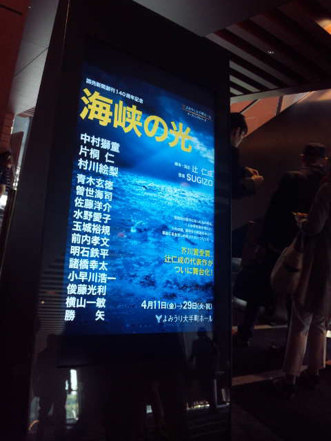 劇15『海峡の光』よみうり大手町ホール(11-11)2014.4.12日(土)12時 獅童VS片桐!海峡の海のように終始重く暗い。いじめの加害者と被害者の関係がそのまま継続し、看守と囚人の関係が、内面では実は逆転している。看守・体制側が囚人を更生させる構図をそのまま、いじめる側がその対象を「守って教育してあげる」という名目で追い詰める、という陰湿な恐怖。花井はまさしく演じる獅童さん本人のカリスマ性の部分を最大限に利用して囚人仲間を懐柔していく。対する片桐さんは、コメディの要素を一切封印し受け手に回る苦しい演技が続く。いじめにあっていた当時から現在に至るまでも常に劣等感にさいなまれ、自分の仕事場にも囚人という立場で再び出現し、妻ともうまくいかずに別れて最後に残された女性さえも、すでに相手の手中にあったという絶望感はすさまじい。これまでの人生で常に関わってきた「青函連絡船」の航行も終わり、その最後の便でまた大事な人が去っていくのも切ない。終始、重く暗い物語の中で、ダリア役の水野愛子のダンスのみが一筋の光として温かさを伝えていた。しかし、それもまた彼の支配下にあったという展開に劇中の斉藤(看守)同様のやりきれなさを感じてしまう。「よみうり大手町ホール」のこけら落としシリーズ。メインの方々のキャラクターが強い分、どうしても看守・囚人らを演じた俳優さんたちの見せ場が作りにくい話になってしまったのが残念でした。2014/04/11(金) ~ 2014/04/29(火)【休演日】14、21日は休演会場:よみうり大手町ホール出演:中村獅童、片桐仁、青木玄徳、曽世海司、佐藤洋介、玉城裕規、俊藤光利、ほか原作・脚本・演出:辻仁成【楽天ブックスなら送料無料】海峡の光 [ 辻仁成 ]価格:432円(税込、送料込)人気ブログランキングへ☆↑ランキングに参加してます。↑もし少しでも気に入っていただけましたら、1クリック投票いただけると嬉しいです。m(_ _)m
