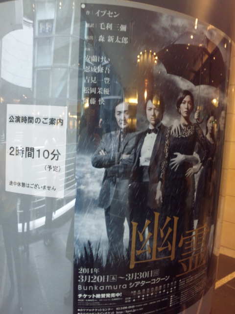 劇12『幽霊』シアターコクーン(BL-1)2014.3.30(日) 130年前の「人形の家」のイプセン作品。今の生活が、まさに音を立てて崩れていく様が舞台上に表現される恐怖。なんと1881年に発表された「人形の家」のイプセンの作品。130年も昔の作品が未だに上演され(しかも日本で)、多くの観客が、新鮮に観れることも演劇の楽しさ。照明や舞台デザインのセンスは、まさしく今風でクール。ほぼ出ずっぱりで感情が大幅に変わっていく役を演じる安蘭けいさんの力量が凄い。今の生活が、まさに音を立てて崩れていく様が舞台上に表現される恐怖。それとはまったく別の意味で存在感があって14年ぶりの舞台という、阿藤快さんのキャラクターも強烈。また、ある出来事を境にガラッと生き方を変えてしまう娘役、松岡茉優さんもまた好演。ホリプロ「幽霊」2014/03/20(木) ~ 2014/03/30(日)会場 Bunkamuraシアターコクーン出演 安蘭けい、忍成修吾、吉見一豊、松岡茉優、阿藤快脚本 イプセン演出 森新太郎【楽天ブックスなら送料無料】幽霊 [ ヘンリク・イプセン ]価格:497円(税込、送料込)人気ブログランキングへ☆↑ランキングに参加してます。↑もし少しでも気に入っていただけましたら、1クリック投票いただけると嬉しいです。m(_ _)m