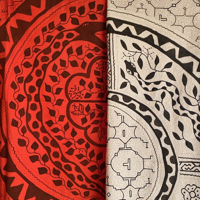 アヤワスカに関連するデザインと大判の中心部に刺繍の入った大作も、カフェスローでの展…