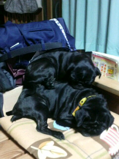 暖房のきいたお部屋は 居心地良いのか ワンずはいつも寝ています♪(-.-)Zzz・・・・ シニア犬になったモモばあちゃん ナナちゃん ベルにマロは 一人でいるのが好きみたい♪ 寒いと皆 仲良くくっついてワン団子になるんだけどね♪(^-^) ララママとりりちゃんとルルちゃんは 仲良くくっついて寝ているワン♪ ララママの上にりりちゃんが完全に乗っかってるワン♪ アララ いつの間にか 今度はりりちゃんの上にララママとルルちゃんが乗っかってるワン♪ でも この後 ルルちゃんとナナちゃんが私の膝に乗って来たよ♪ そしたら りりちゃんとララママもやってきて、たちまち私はパグだらけ(^-^)♪ ちなみに足元にはモモばあちゃんもいますよ♪ ベルは大好きな息子の膝に♪ マロはマッサージ椅子の上に♪ それぞれお気に入りの場所に♪ しばらく私は動けないワン(^_^;)♪