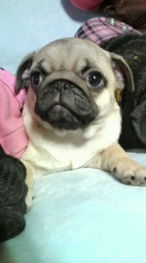 パグの女の子、ルルです♪ 年明け早々 ワクチンに行きました♪ 体重3・3キロありました♪ しっかりパグの血筋引き継いでいます♪(笑)