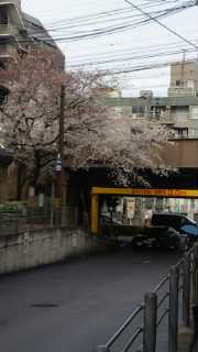 うちの最寄駅でございます。おけいはんの高架に、もたれるように桜がくるのでございます。