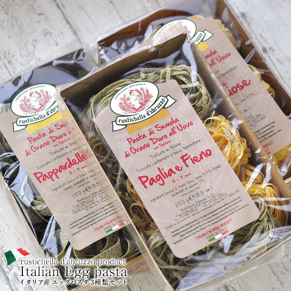 ルスティケーラ エッグパスタ3種類セット[フェトチーネ・パッパルデッレ・タリアテッレ]×各250g<br>4セットまで1配送でお届け<br>北海道・沖縄・離島は送料無料の対象外<br>[賞味期限:お届け後2ヶ月以上]<br>【2~3営業日以内に出荷】【送料無料】