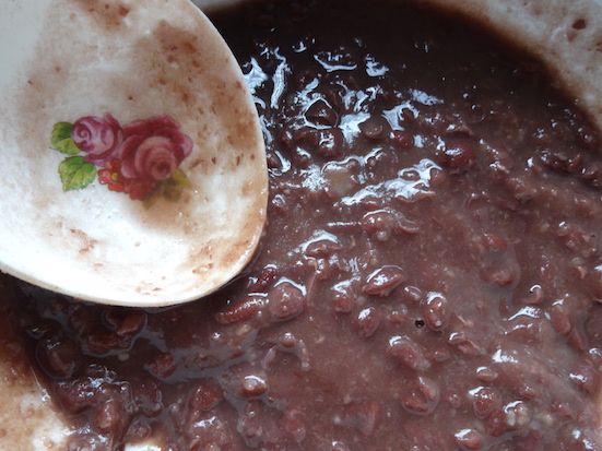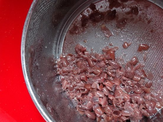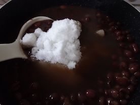 砂糖の量は適当 小豆と同じ量ぐらいは入れますね〜
