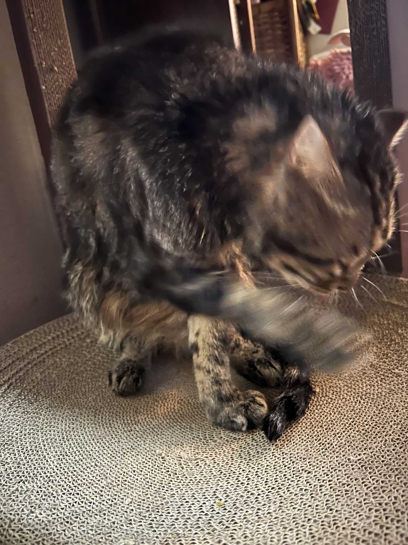 最近の雨で思い切り遊べない2ニャンコが玄関開けたら突出