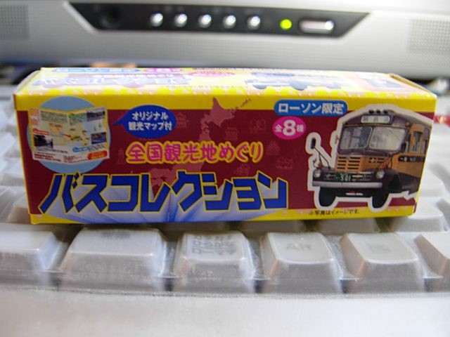ハローワークの帰りにコンビニ寄った。で、ドリンクコーナーに行って何を買おうかなーって思って見てると目に飛び込んできた物が。それはUCCの缶コーヒー。2缶を一つにしてオマケが載っている。また、しょーもない事してコーヒー売ろうとしてるなーと思いながら見た。今回のオマケはバス。しかもボンネットタイプが入ってるとの事。次の瞬間思わず手にとってレジに向かってました。で、買ったのに付いていたのはこれ。お隣の広島県の福山の鞆鉄道のボンネットバスのミニチュア。このバスは現在も鞆の浦近辺を走ってるみたいです。鞆の浦って以前、鉄腕ダッシュの坂を下るやつで紹介された事がある所です。で、あと8種類ある。と言ってもボンネットバスは5種類。その内1種類今日手に入ったのであと4種類。またローソン行ってみようっと。まんまとメーカーの思惑にのせられてる気がする・・・。
