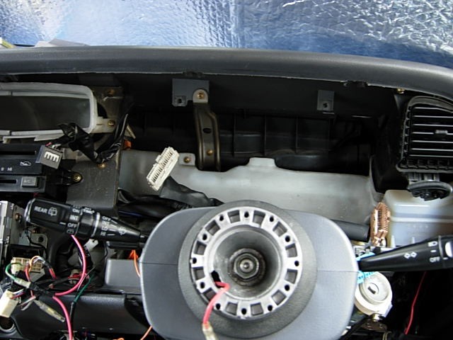 ズーッとバラバラだったハイエースを組み立てる事に。メーターも無いこんな感じ。まず、メーターの透明なプラスチックを専用のクリーナーで磨いて取り付け。エアコンの噴出し口の裏側のスポンジを市販の隙間スポンジに張替え。で、ハザードや時計などの配線を接続してコンソールパネルをはめ込む。4箇所ビス止め。昨日付けた水温計をステアリングコラムの上に両面テープで貼り付けー。最後にステアリング付けて無事完成ー。あとは運転席付ければ終わり。有意義な一日でした。そうそう、この途中に先日車検を受けた軽トラのライトをHIDに戻しましたー。