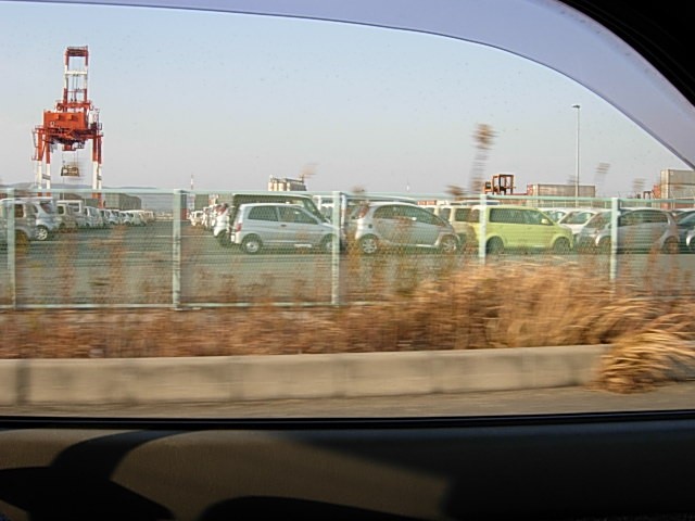 以前勤めていた会社に車の部品を探しに行った。今日は収穫なし。帰っていると三菱車の新車ヤードに車が溢れるぐらいあった。こんなに売れてるの?って感じ。で、橋の上から見えた車両運搬船。以前画像に載せたのより大きい。建物と比べて下さい。写す角度にもよるとは思いますが、建物が手前にあるのに船とあんまり変らないー。近くに行くと、でかッ。で、新車の車列が対向車線走ってました。臨バン付けた三菱デリカ。よーく見ると運転してる人が左に居ます。てことで、輸出仕様です。日本では見かける事はないでしょうねー。今日はとある港の一風景でしたー。明日は広島に行くので風景が撮れたらアップします。