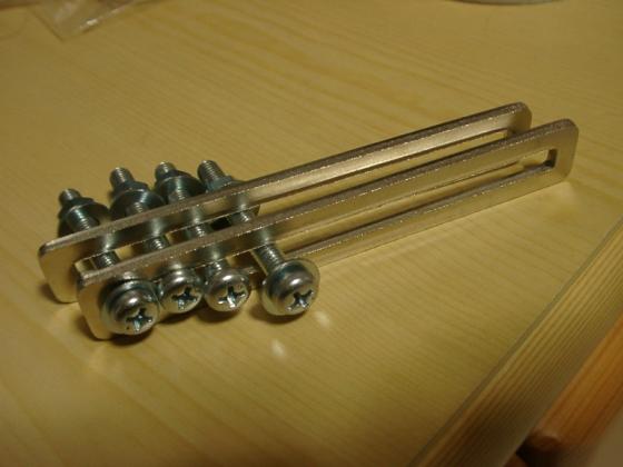いや~あっという間に11月になってしまったなぁ・・・・陽気が暖かいから、秋らしくないね。しかし、今夜は雨だと言うし・・・・(-ω-;)ウーンさてww昨日のクイズにこの道具は何を使う物か?その答えを発表しますww友人の友人からの依頼で、アコギのブリッジが取れてしまい、再度接着しても剥がれてしまうので、どうすることもできずに、うちに駆け込んできましたww30年前のアコギでニカワで接着していて、劣化による剥がれたようです。しかし、オーナーが木工用ボンドや瞬間接着剤で接着したようで、それではかえってダメになります。ボンドの上にボンドを塗っても、粘着力が無く剥がれるだけで、しかも、木工用ボンドや瞬間接着剤では、強度不足で弦の力に負けて、剥がれます。作業の際に、ボンドを綺麗に取らないといけません。ボディのトップに浮きが少しあったので、平面になるように削りました。そこからは答えですww再接着する場合は、ボディとブリッジとも新品みたいに平面じゃなくなっているために、若干歪みが発生しているのが多いです。そのためにボディとブリッジを完全に密着しなければいけません。いかに簡単に手軽に密着させるには、あの道具を使うのですwwでは、使い方ですwwこのようにブリッジの弦を通す穴にネジを入れます。密着させるためには4箇所が妥当と判断しました。ボンドは、楽器、家具用の強力木工ボンドを使います。間違っても、一般の木工用ボンドや瞬間接着剤は絶対に使わないでください!タイトボンドと言って、ニカワより乾きが早く、密着度が高く、固着はかなり強力でメーカーの製造はこれを使用しています。高価なボンドですので、一般ではちょっと入手しにくいですが、東急ハンズや鉄道模型店で入手できます。ホームセンターや楽器店などは置いてませんので、注意です。ボディにボンドを塗り、このようにボディの穴にネジを通します。速乾性のため、時間との勝負なのでボンド塗った写真はありません・・・・取り付けたら、ボディの中にステーとナットを付けて、ボディとブリッジを密着するまで少しずつ締め付けます。その間に隙間からボンドがはみ出してくるので、素早くふき取ります。その繰り返しするために根気が必要になります。15分で固まり始まり、30分で固まりますが、完全に固まるまで一晩放置しますww簡単のように見えますが、時間と戦いで素早い行動をしなければ、失敗しますwwこの道具のおかげで一寸狂わずに元の位置に接着可能になり、重宝します!このステーを選んだ理由は、ブリッジの弦を通す穴の位置がアコギによって、違うためにどんなアコギにも対応できるのと、左右均一に密着するようにこのステーにしたわけですwwネジだけでは、左右にバランスが悪くなり、必ず隙間が出ます。ステーをブリッジ側とボディの中側に重ねることによって、密着度が高くなります!我ながら、良いアイディアだな~ww貧乏なリペアマンですから~( ゜∀゜);・*:・`ガハッしかし、この方法はまだ実験段階なので、さらに改良するつもりですww正解者はいませんが、正解に近かったbj-45さんに拍手!☆-(ノ゚Д゚)八(゚Д゚ )ノイエーイ