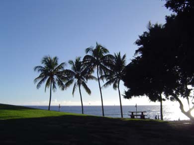 年末年始に家族が来ていた時は、車2台で動いていたのでほとんどの食事はワイキキから離れたレストランだった。けれど、唯一大晦日の晩だけは、ワイキキのキングズ・ビレッジにある”田中オブ東京”を予約した。ニュー・イヤーズ・イブには、下手にワイキキを離れると帰って来る時に渋滞に巻き込まれる恐れがあるのがこの日にワイキキのレストランを選んだ理由の1つ。そしてここにはセレブレーションのパッケージがあることを知り、今年70歳の誕生日を迎える私の父、そして弟のお嫁さんのおとうさんの古希のお祝いをいっしょにしてしまう企画を立てたのだった。そのパッケージというのは$12ちょっとで、大きな全員の写真とキャンドルが立った、きれいでおいしいケーキがついてくるというもの。片言の日本語のジョークを飛ばしながらの、シェフのパフォーマンス、柔らかくてどんな日本人の口にも合うであろう、鉄板焼きステーキに総勢11人の私たちは充分満足であった。マネージャーらしき白人の正装(?)したおじさんが、食事の合間に割り箸の紙で、女性客にはバラの花、甥っ子には動物を作ってくれたりして、サービスも満点。けれど一番盛り上がったのは、やはりそのおじさんが「オメデトウゴザイマス!」と何度も叫びながら火のついたキャンドルつきのケーキを持ってきた時だ。おそろいのレイをかけ(これは私が買ってきたもの)、お店の人からも祝福の言葉をいただき、極めつけに、義妹が選んだ私たちからのギフトを孫が渡すと古希を迎えるおとうさんたち2人は、ハンカチを目に当てて泣き・・・その横に座っていたおかあさんたち2人も涙。4人でハンカチを目に当てている光景を見て私と義妹2人も涙・・・さすがに弟と甥っ子は泣いていなかったが。そして、日本を離れて15年、ハンカチを持つ習慣がなくなった私は「あ、日本人ってやっぱりみんなハンカチ持ち歩いてるんだ・・・」紙ナプキンで涙を拭きながら、妙なところに感心したのだった。今回のハワイでの休暇は、うちの家族と弟のお嫁さんの家族が多分10年ぶりくらいに全員揃った。義妹の妹(?)はカリフォルニアに住んでいるし、私はハワイ。義妹のおとうさんが去年入院したこともあり、一時はこの全員集合も危ぶまれただけに、本当に嬉しかった。その日はいったん自由解散し、私は両親とモアナでコーヒーを飲み、弟はたまたま隣りのホテルに泊まっていた、大学時代のお友達と会い、他の人はそれぞれ、買い物をしたり、ブラブラしていたらしい。そしてシニア組4人はホテルに戻り、残りの若者組(?)はまた10時に集まって、ワイキキビーチへ花火を見に行った。除夜の鐘が鳴る、静かな日本の大晦日のイメージも好きだけれど、ハワイのあっけらかんとしたニューイヤーズイブのお祭り騒ぎも楽しい。そして何より、いつも遠く離れている家族といっしょに過ごせたことがこの冬の最大の思い出・・・★”田中オブ東京”で、入ってすぐに”ワリビキケン、オモチデスカ?” とウェイトレスさんが訊いてくれたことも、書いておかなくちゃ。 アロハストリートなどに、10%OFFのクーポンがついています。 10%って、人数が多くなるとけっこう大きいですよ!★写真は、夕方のカカアコ・ウォーターフロント・パークです。 今日のハワイはすごく寒いんですけど、この日はとても暑く 雪の北海道から来た家族は、”夏”を思い切り楽しんでいました。