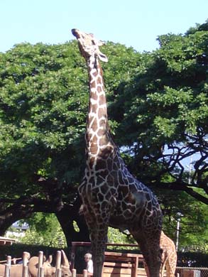 ホノルル動物園は、ワイキキの端っこにある。便利な場所だしパーキングも広いのだが、子供がいない私にとって「明日の休日は動物園でも行こうか!」ということもなく、今回家族が来て、3年ぶりに訪れた。そして気づいた・・・動物園はなかなか癒される場所だということに。まずは、私がいちばん好きなキリン。写真を見ると、遠吠えをしているようにも見えるが、多分首のストレッチをしていたものと思われる。キリンは目が大きくて睫毛が長く、とても穏やかな顔つきでなぜか信頼できる感じがする。まあ、深く付き合ったことはないのでわからないが。これは、なかよしのワオキツネザル。この2匹は見ている人を、平和でほのぼのとした気分にさせてくれた。ちなみに、全く動かないで木にぐったりともたれているのが1匹いて、死にかけているのかと心配になってよく見たら、ぬいぐるみだった。紛らわしいジョークはやめてほしい・・・このサルたちは、明らかに観客を意識していたと思う。拍手に答え、木にぶら下がったり、飛び回ったり、いろいろ技を披露してくれてありがとう。全くサービス精神旺盛なサルたちだ。チップをもらうわけでもないのに(笑)シマウマも、私が大好きな動物の1つ。もともとは馬が好きで、いろいろなところで馬に乗ったのだがなぜかどこでも馬鹿にされ、一度などは落とされそうになり、キライになった。だが、おとなしそうで謙虚な感じのするシマウマならきっと私を馬鹿にしないような気がする。あくまでも、希望的観測だが・・最後に、ダチョウ。この写真を見た時、私は一瞬自分が何を撮ったのかわからなかった。カメラを向けただけで、さっさと逃げ出して「もう少し優雅さを身につけてほしい」と思わせた孔雀に比べダチョウはおっとりとし、どこかひょうきんでマイペースという気がする。いや、マイペースといえば、動物はみんなマイペースだ。観客を喜ばせることに生きがいを見出しているような(?)サルもいれば、観客など見向きもしないで寝ているライオンもいる。なんだか、のんびりとした気分になれる。さらに、休日に行くと家族連れが多く、キーキー声で叫ぶ子供のおかげで英会話の勉強もできる。「Mom, look! There are 3 monkeys on the tree!」「Dad, what's that!?」「That's a goat. He is sleeping.」これは、私が中学の時の英語の教科書の会話そのものだ。しかももちろん発音は、当時の英語の先生よりいい。園内はかなり広く、普段歩かない私のような人は足が棒のようになるが、緑が多くゆったりとしたホノルル動物園は、なかなかのお勧めスポットだ。★入り口のショップも、けっこう充実しています。 私が3年前ここで買った、波の音が入ったバッハのCDがもうなくて残念。★日には焼けます。 アメリカ人観光客も、日焼け止めを塗りながら歩いてました。★甥っ子たちが次にハワイに来る時、「もう動物園は行かなくていい」 って言ったら、ちょっとさびしいな・・なんて今から考えています・・