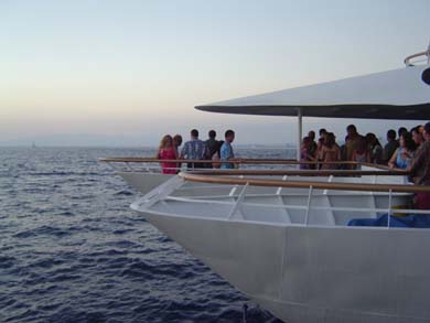 今朝、1週間のハワイでの休暇を終えた私の家族をバンを貸してくれていた友人と共に、ホノルル空港へ送っていった。9人が雪の北海道へ、そして1人がカリフォルニアへ。そして、残された私は、まるで自分が旅行から帰ってきた時のように疲れがどっと出て、ほとんど時差ボケ状態。空港で別れた友人がお昼に電話してきて「ジャスミン、さっき今日は水曜だって言ってたけど、今日火曜だよね?」と言うまで、午後から仕事に行くと思いこんでいたのだった。それにしても、うちの家族はなんてタフなのだろう。ある日などは、ホノルル動物園へ行った後ビーチで泳ぎ、モールでショッピング、ディナー、そして私のコンドでテニス。甥っ子たちが12歳と14歳になり、小さい時とは遊び方も体力も違う。私って、普段何して24時間過ごしてたっけ・・・?と思ってしまったほど120%よく遊んだ1週間。幸い毎日お天気がよかったこともあり、ハワイの良さを、私もあらためて満喫することができた。そういえば、不思議なことに、元旦だけは雨が降り私は3年連続、雨の中を初詣に行った。ただ、今年の雨は、去年、おととしのどしゃぶりの雨と違って晴れているのにサーッと雨が降っているような、天気雨。さすがにどしゃぶりだと出足が鈍るらしいが今年はすごい人出で驚いた。恵みのしるしとされている雨の中、家族全員の初詣で始まった2006年。今年もきっとよい年になることだろう。さっき、スーパーマーケットに買出しに行ったら、顔見知りの店員に「ちょっと日に焼けたね」と言われた。シミは確実に増えたことだろうけど、インドア派の私もたまにはハワイの太陽と海と風を、思い切り楽しむ時間があってもいい。これから、めずらしく砂が落ちている私の部屋に掃除機をかけ、明日からの日常生活に備えることにしよう。★というわけで、久しぶりの日記更新です。 パソコンから離れていた間も、メールやメッセージをくださった方、 のぞきに来てくださった方、ありがとうございました。 今年もどうぞよろしくお願い致します。★写真は、サンセットディナークルーズで船の上から撮った夕日です。 残念ながら、期待していたクジラは見えませんでしたが、 きのうカカアコ・ビーチパークで、水際にカメが2匹遊んでいて うちの家族は大騒ぎしてました(笑)