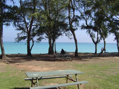 仕事の後”ハリー・ポッター”を観て、悲しい気分になってしまったので気を取り直して、今日は私のお気に入りのビーチを紹介したい。12月30日に、家族10人をワイマナロ・ビーチへ連れて行った。実はこの日、ハナウマ湾へ行く予定だったのだがなんと車がいっぱいで入れなかったのである。ハナウマ湾へ下りる道の前にガードが2人立っていて、「人を降ろすだけでもダメ、とにかくここから先は一切入れません」ハイ、さっさと行って!という態度。シュノーケリングの用意までしてきた弟や甥っ子たちはがっかり。それで、そこからさらに15分ほど走って、このワイマナロへやって来た。エメラルド・グリーンの海、真っ白な砂、松の林も風情があってよい。ワイキキやハナウマほど人が溢れかえってもいず、みんなさっそく海に入ってはしゃいでいた。思ったより波が強く、魚はほとんど見つからなかったそうだがここは私の家族にとっても、お気に入りのビーチとなった。ちなみに、ハナウマ湾ではどんなに混んでいても、ツアーの車だけは入れるらしい。後日、みんなは一人たったの$7で、ホテル送迎はもちろん、シュノーケリングと足ヒレまで貸してくれるツアーで、無事ハナウマへ。ここでは期待通り、しっかり魚を見ることができたそうだ。帰国してすでに1週間が経ったが、みんな雪の北海道できっとハワイの海を懐かしく思い出しているだろう。 ★ワイマナロ・ビーチで魚を探す弟。 ほとんど魚と化している・・!?(笑)★”ハリー・ポッター 炎のゴブレット”、魔法は楽しめたけど けっこう暗くてこわくて悲しくて・・・ 私はやっぱりハッピーエンドの映画が好きです。
