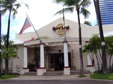 仕事の前に、ハードロックカフェへ寄った。帰国前のおみやげショッピングの一環として、入り口にあるロゴ・ショップでTシャツを買うために。ここは有名なお店だが、私は今日でまだ3回目だ。最初に行ったのは、ハワイに来たばかりの頃、多分14、5年前になるだろう。その時は私もまだ若く、「ハードロックカフェに行くなら、金曜日の晩しかないよね!」と、友達と夜更けに繰り出したのだった。今でも覚えているが、予想以上の人、人、人、どこもかしこも人でぎっしりで、身動きもできないほどだった。そして、もちろんロックの大音響。誰かに話しかけられてもろくに聞こえない、思い切り叫ばないと話もできない。翌日の頭痛と喉の痛みでよほど懲りたのだろう、その後私は10年以上、ハードロックカフェから遠ざかっていた。そして2年ほど前、平日の夕方にビジネスパーティーがあり再びハードロックカフェを訪れた私は、「え?」と思った。まだ日が落ちる前のハードロックカフェは、清潔で明るい、ただのアメリカンなお店だったからだ。天井からスポーツカーがぶら下がり、壁にギターがかかり、ロックスターの写真がたくさん飾ってある。ハードロックカフェ、イコール夜、というのが私のイメージだったがランチに来るのも意外に楽しいかもしれない。ロゴショップもけっこう広く、いろいろなデザインのTシャツやちょっとしたグッズがあって充実している。ここのロゴは、もちろんHard Rock Cafe Honolulu だが、お店がある場所によって、HonoluluがLondonになったりするわけでこれもちょっといいハワイの記念品やおみやげになると思う。奥のレストランで遅めのランチを楽しんでいる人たちを横目に私はいちばんオーソドックスなロゴTシャツを買い、仕事へ向かった。今度はランチに来なくちゃ。★ちなみに、”プラネット・ハリウッド”には入ったことありません。 オープンした時、オーナーのシュワルツネガーが来るということで カラカウア大通りで2時間も立ちっぱなしで待ったんですよ。 (やっぱり、昔は体力あったんですね・・・) でも、ものすごい人で結局近づけず、あの大きいはずのシュワルツネガーが 豆粒のように遠くに小さく見えました・・・(笑)