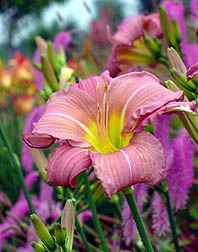 きっつ~い長~い坂道を一つ、二つ、三つ越えれば、そこは公園であった。 というわけで、『なんとなく夏の花々ぱーと3』公園バージョンである。 まず公園入り口でパッと目を引くのは、エキナケア・プルプレア。 あちきは、ずーっと“エキセアナ”だと思い込んでいた。だって、その方が言いやすいんだもん<そういう問題ではない。 で、次に控えるのは、バイカラーのアンゲロニア・エンジェルフェイス。 ほかに、白いのとピンクっぽいのが植えられていたけれど、倒れやすいらしく、みーんな、見事に斜めっていた。 こちらはハナトラノオ。花虎の尾と書くそうだ。 こういう花穂が虎の尻尾みたいに見える植物は総じて“なんちゃらトラノオ”と命名されているらしい。 そう言われてみれば、虎の尻尾に見えなくもない、中々風情のある姿である。 スーパーチュニア・パープルパフィー。 半八重咲きの品種らしい。と言っても、写真を撮っているときには半八重だとは気付くはずもなく。 あちきのハンチクな観察眼なんざ、所詮そんなもんさ。どうだ、まいったか、思い知れ>自分。 ヘメロカリス・なんちゃら。なんか、いっぱい植えられていたうちの、一種。 ヘメロカリスは、英名 Day-Lily っつって、花が一日で萎んじゃうっちゅー、花火みたいな花なんだってね。もったいないねぇ。 今後もまた、きっつ~い長~い坂道を一つ、二つ、三つ越えて行く気になるかどうか。案外、チャリじゃなくてテクシーで行く気になっているかもしれない<や、それはねぇな。この日のお気に入りの一枚。