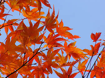 今日は昨日より秋晴れに近く。 車でお出かけレッツらゴー。目的地に近づくにつれて、ぼんやりとした空の色から、はっきりとした空の色へ。お山も、すっかり色づいて、秋の深まりをしみじみと実感。 目的地に到着して、見事な紅葉スポットぶりに、「へぇ~」「ほぉ~」の連続。 何度も来ちゃいるが、「へぇ~」「ほぉ~」と感嘆するほど紅葉するとは知らなかったぜよ。まいったな。 人が大勢繰り出しているせいか、この日は、ガラの姿を見つけることもなく、ガラの声を聞くこともほとんどなかった。 でも、あちき比でオオバンとアオサギをけっこう綺麗に撮れたし、カメラは間に合わなかったもののミソサザイを目撃したし、見頃は過ぎていたものの紅葉も綺麗だったし、何より、良い天気だったし。 秋の思い出、ご馳走さん。今日の一枚。ピンポイント紅葉。