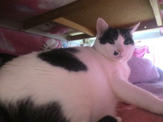はち君(8)はこたつテーブルの下にいたよ