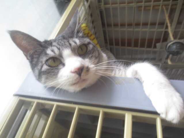 すもも(17)はケージの4段目でスリスリしながらくつろいでたよ