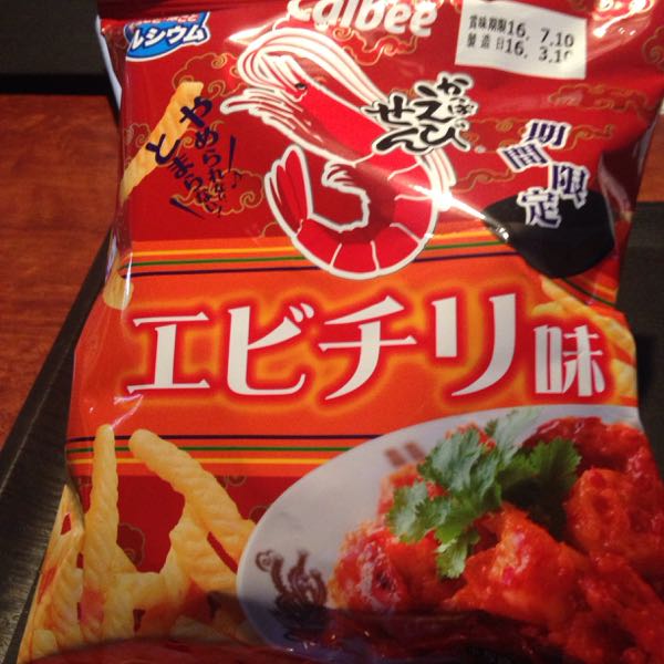 かっぱえびせんの期間限定味・エビチリ味です。ほんのりとスパイシーで美味しかったです。