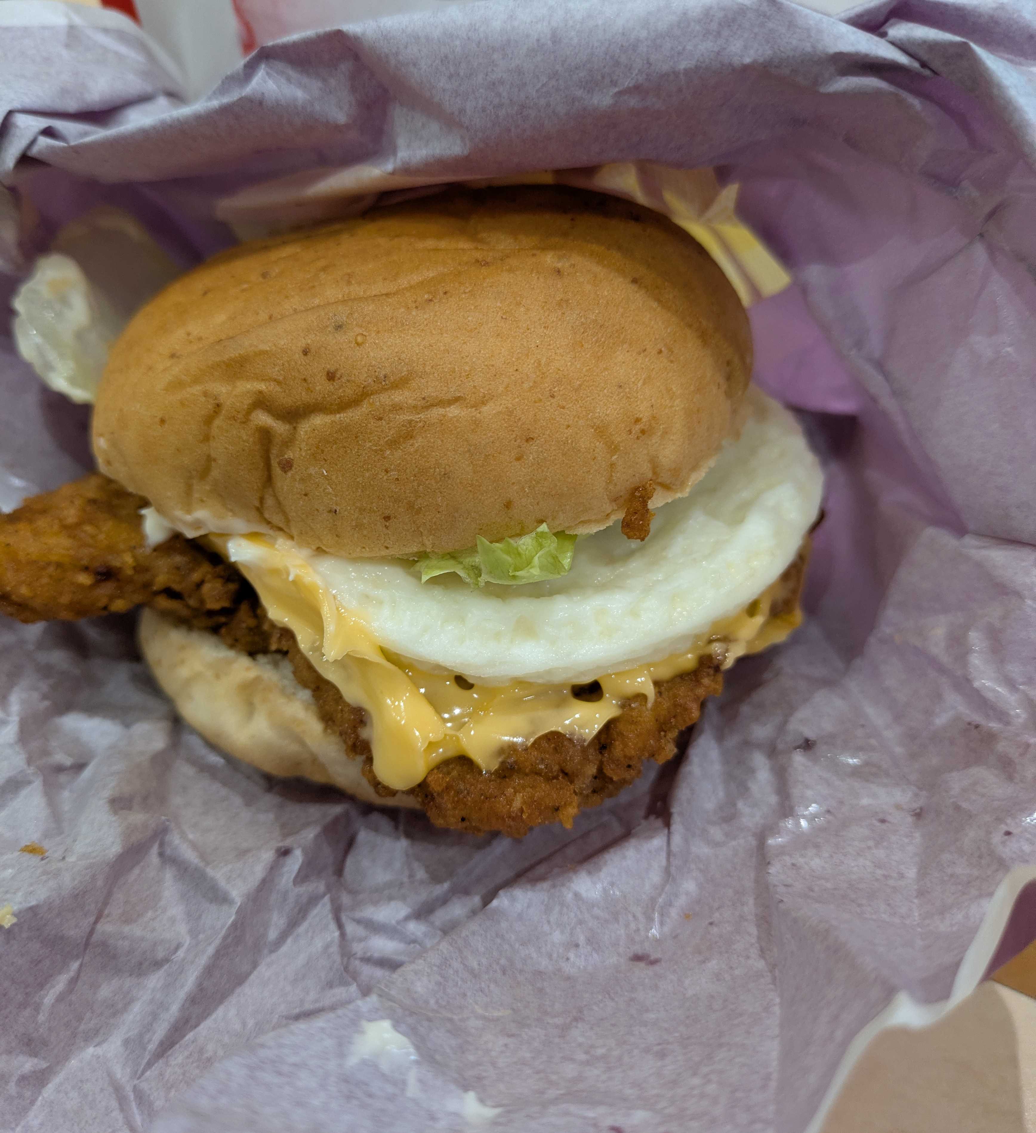 半熟の月見と、チキンフィレとの相性が抜群で最高でした。
