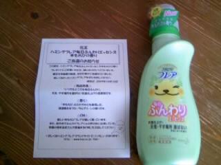 モラタメさんのモラエルで花王 ハミングフレア毎日ふんわりエッセンス(木もれびの香り)が当選しました10月10日(土)新発売です。 商品の特徴抗菌仕上げで、天気・干す場所を選ばない。汗をかいてもニオイを防ぐ。衣類にタバコなどのニオイがつくのを防ぐ。洗たくじわ・静電気も防ぐ。天然生まれの柔軟成分配合。 さわやかな木もれびの香り。(フローラルグリーンの香り) 木もれびの香りって・・・想像つかないので、まずは試しに早速使用してみました。洗濯中はフローラルの甘い香りが漂ってすっごく癒されますイヤミのない香りは好感度大ワタシは好きな香りです洗濯物が乾いてからはほのかに香る程度です。コレでお洗濯した衣類を着てないのでまだ分かりませんが、ニオイを防いでくれるらしいので後日、旦那さんの着用後のアンダーシャツの匂い嗅いでみます