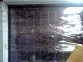 この日は、実家に帰ったのですが帰ると、母が汗だくになって、台所の窓を洗い終わった所でした。台所には、泥棒よけの柵がしてあった為、家の中で柵に窓を立てかけて母は、外に出たのですが・・・がっしゃーーーん!!!!!その時、昼ごはんの支度中の私をかすめて、窓ガラスが倒れました!レールのすべりを良くしようとKU**556をかけようとした瞬間!!!!!窓を軽く触ってしまった様で、そのまま内側に倒れてしまったのでは・・・。母は、断じて触っていないと言いますが、特に風も吹いていなかったのです;;;私は、割れた窓を抑えるだけで暫く、身動きができません。足は、裸足だし、窓枠を迂闊に動かすとガラスが散るし;;;母に、スリッパを持って来てもらい、二人であせってガラスを片付けました。・・・・・ガラス屋さんは、お盆の為お休み。現在、実家の台所の窓は、ラップで覆われています。しっかり屋の母ですが、流石に応えたらしく、「なんで最後の最後で~」と何度も呟いていました。割れた窓の写真は余裕がなく、アップできないけどラップの窓です。ピンボケでわかりずらいんですが