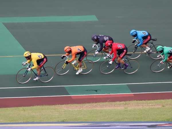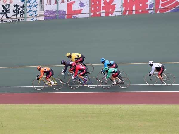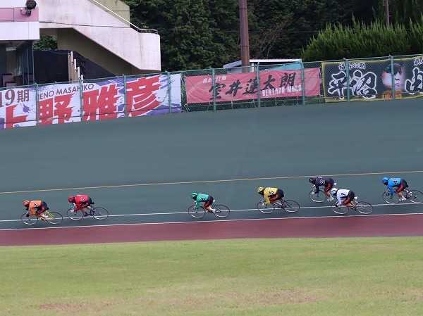 ⑦一ノ瀬選手、①山崎選手の地元佐賀コンビが出走し先行職人⑦一ノ瀬選手がジャン先行で2番手は①山崎選手です。