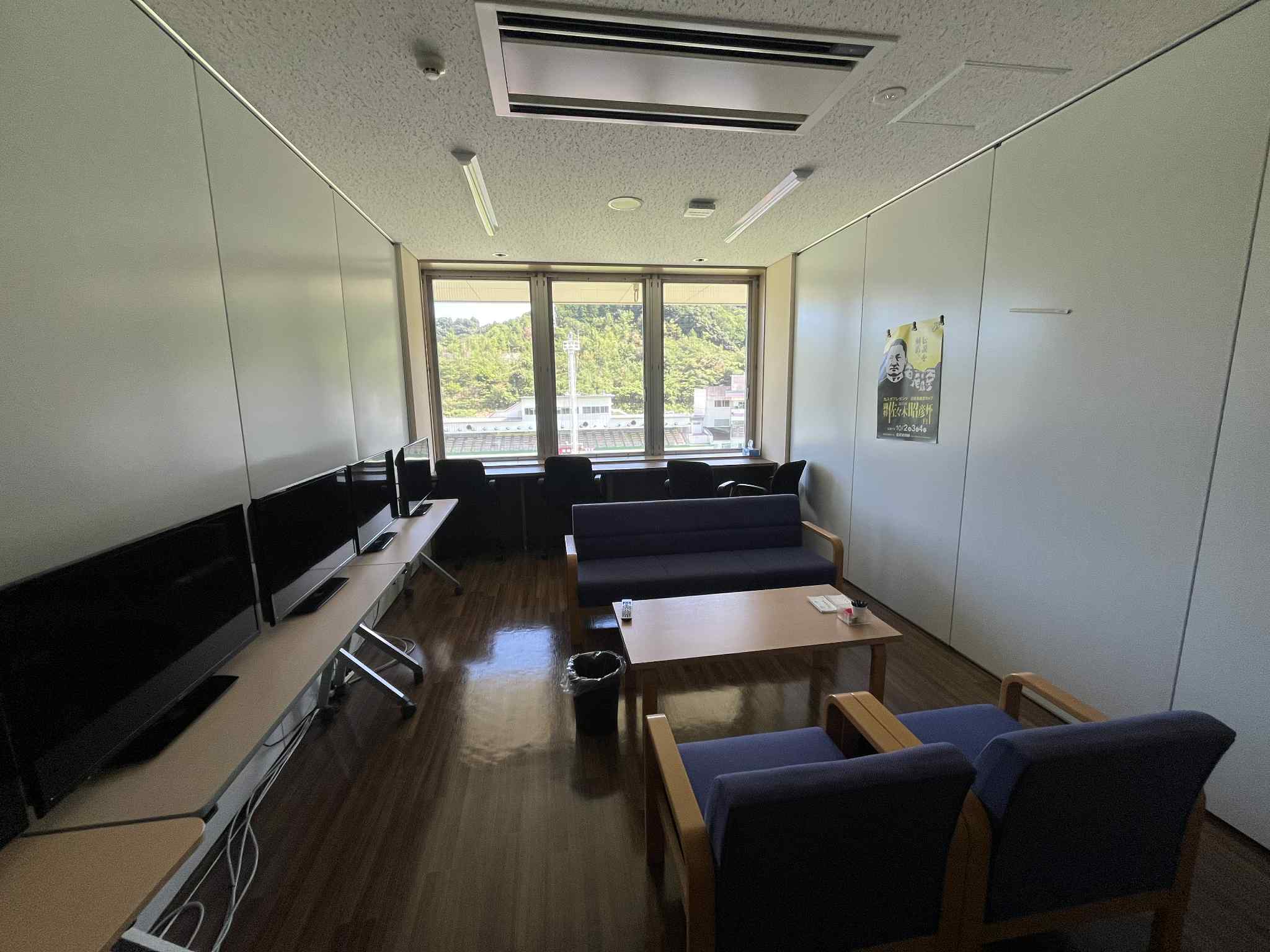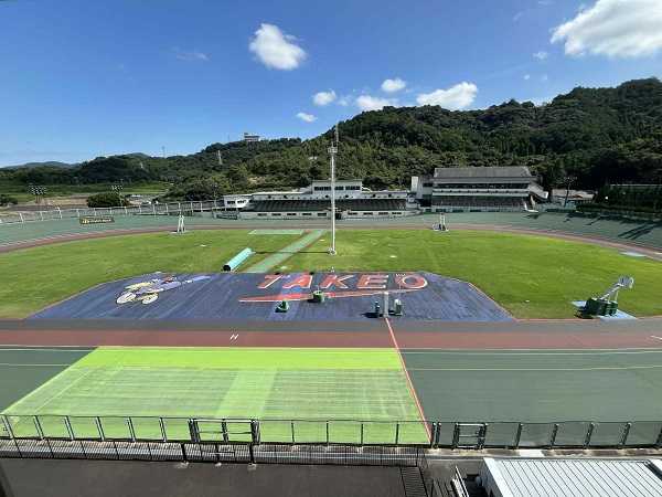 ↑綺麗な武雄競輪メインスタンド、滅多に入ることができない3階からバンクにめがけて紙飛行機を飛ばそう