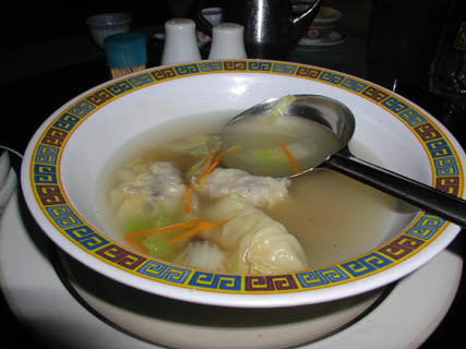 4本目が終わり、お腹も空いたし、夕食です。ジェイスアーベンリゾートは町から離れたところにあるんですが、リゾート内のダイビングショップ:アクアベンチャーでは町のレストランまで送ってくれるんです!(無料です~)なんと!ボートで送ってくれるんですよ~。ボートで夕食を食べに行くなんて!なんか、良くないですか!?私は喜んでました。ただし、行きしなはまだ明るいので15分?20分??ほどで着きますが帰りは日が暮れ真っ暗な海で、ライトもなくボートはゆっくりゆっくりなので、30分以上かかります。でも、これも夜風に当たりながら、晴れてれば星もきれいし、のんびり帰れて私は良かったです!!そして、リゾートのレストランがいまいちなんですが、この中華は美味しい! ワンタンスープです。お肉たっぷりのワンタンです! 日本人の味覚にぴったりで、美味しかったです~ 写真では伝わらんかな?チャーハンのご飯も美味しいそうに輝いていて本当に美味しかったです。 中華は、この回る丸いテーブルが良いですよね。これで、みんなでつつきながら食べるのはいろんなのが食べられるし、私は大好きです。たらふく食べて、1000円から1400円くらいです。