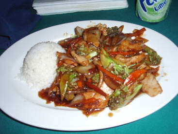 3日目3本目を私はパスしました。ポイントは沈船でしたが、透明度も悪く、今ひとつだったようです。で、4日目はみんなで(って3人ですが)3本目をパスして、ランチから町のチャイニーズレストランへ行くことにしました。そして、そのあと、マダンの町を散歩してみることにしました。リゾートからはアルバートにボートで送ってもらいました。 フカヒレスープだったかな?中華は円卓で、回しながら、みんなでつつけて、ほんまに良いですわ。中華と言えば、チャーハンばかり食べてたので、今日は、焼きそばに。。。あんまり変わらんか。。。笑