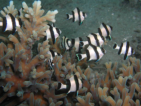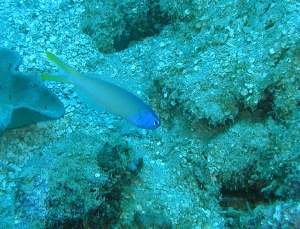 またまた、ハウスリーフです。上はミスジチョウチョウウオ下はマンジュウイシモチだいぶ、小さい子です。もっと小さい子も居るには居ましたが数も少ないし、すぐ珊瑚の隙間に隠れてしまうしで撮れませんでした。 イチモンスズメダイ幼魚じゃないかなあ???わかりません。私の図鑑に載っているのでは、これが一番似ているような???そして、こっちが親じゃないかなあ??? この子が、大変だったんですが、それは次のアップにします。