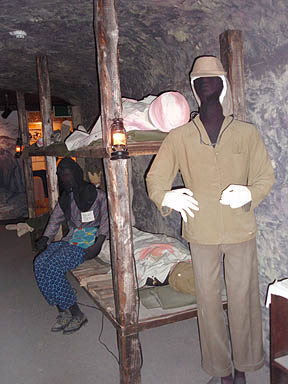 摩文仁の丘の平和資料館からのギーザバンタをあとにして、南風原陸軍病院壕あとの悲風の丘の碑を見に行きましたが、工事中で見れませんでした。で、とりあえず南風原文化センターへ。南風原陸軍病院のことなどを展示しています。当時の病院壕のジオラマです。この木造の2段ベット 一つに2人が寝かされていたようです。 ひめゆり学徒隊もここで看護師として参戦させられていました。証言が2つ、パネル展示されてました。 もう一つはひめゆり学徒隊だった宮良さん。本も出されています。(「私のひめゆり戦記」)2,3年前、ひめゆり資料館で直接、お話を聞かせて頂きました。 ちょっと読むのが大変でしょうが、是非!!トイレに行くと、貼ってありました! 南風原文化センター、多分町立だと思うんですが、すごいですよね。全国の公立施設のトイレでこんなすごい詩が貼ってあるとこなんて、そうそう、ないですよね。悲風の丘が工事中だったのは、文化センターが新築されるそうです。来年には新しい文化センターが出来、そこから、病院壕までつながる?ようです。