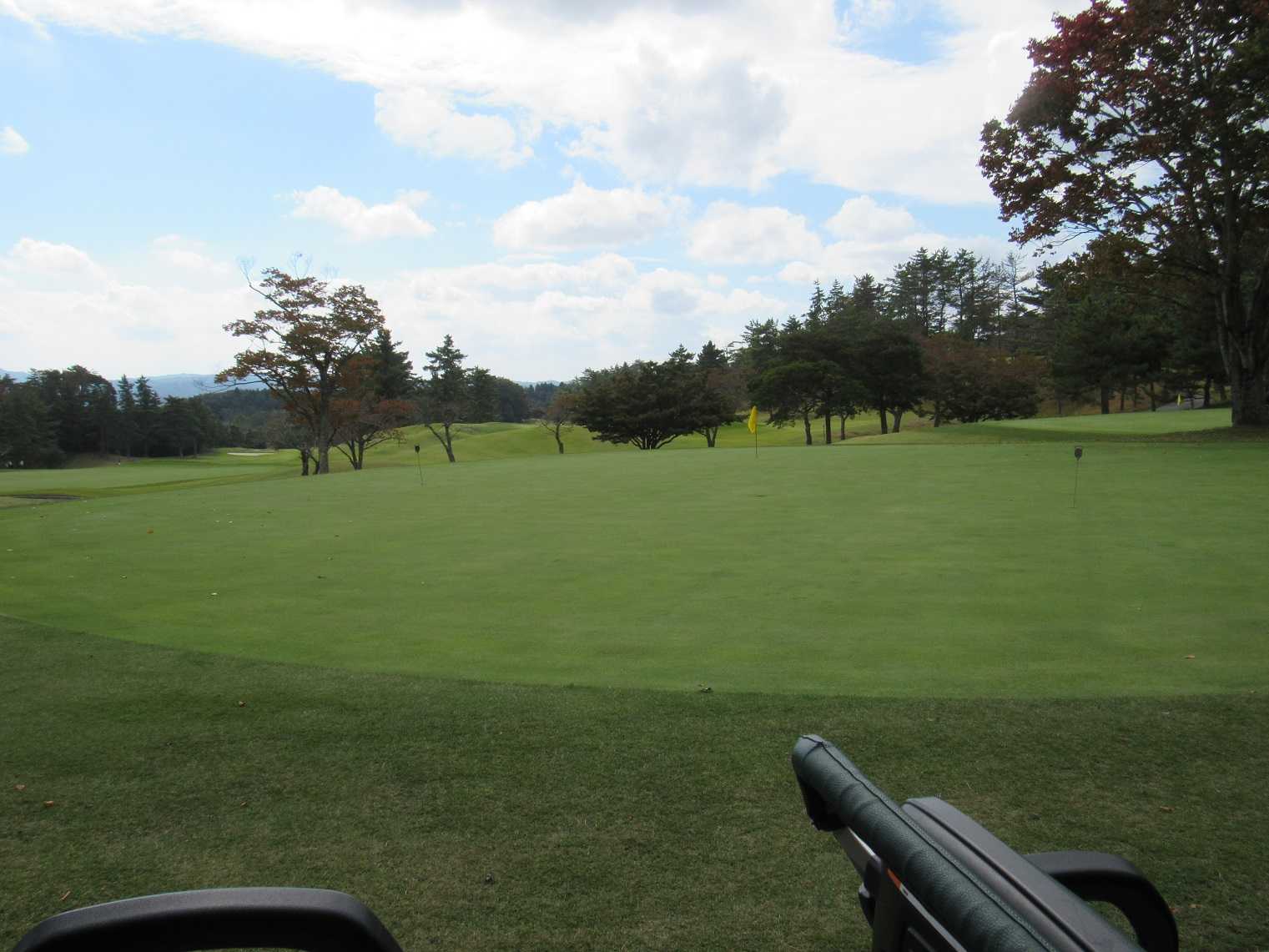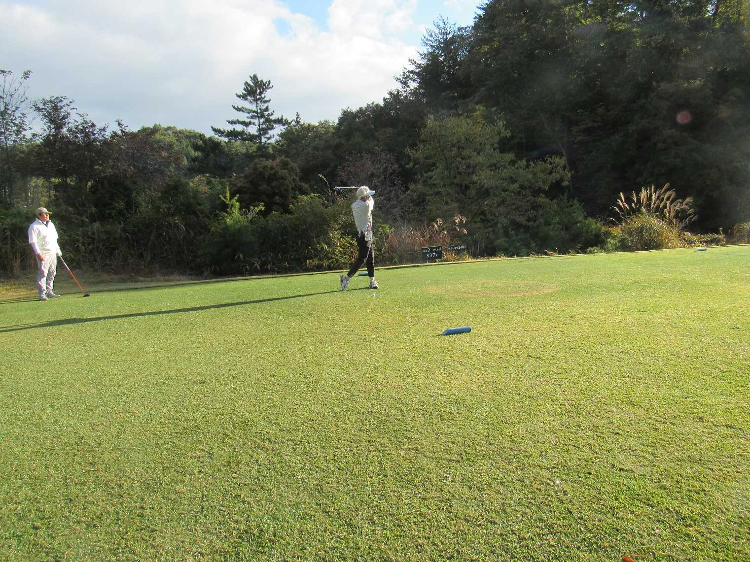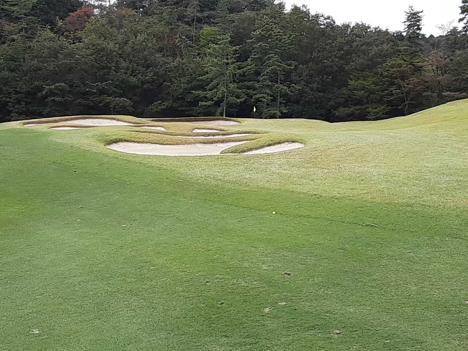 8時半ティオフ❣!メンバーは、Tさん・金さん・あっすん❣❣いつものメンバーです^^スタートホールから、たくさんゴルファーが見えこれは時間がかかるだろうと思った通り前半2時間半。後半は3時間弱。。。ただ待ち時間はしゃべりまくっていたので、あまり気にならず^^Tさんだったか、ホールアウト後、今日はまあまあ順調だったなと^^ま、楽しく過ごせて良かったです❣❣^^天気は最高❣!暑くなく爽やかな空気で、青空に紅葉も少し^^グリーンコンディションも素晴らしい❣❣^^スピード10.5 コンパクション23だったか?明日はクラブ選手権決勝で、きれいに速いグリーンに整備されています。なのに、、、いつもの如くボールマークが、あちこちに・・・さすがゴルフのベストシーズンでした。さて、昨日のゴルフです^^西コーススタート1番ロング480ヤード。ドライバー、ナイス❣!わずかに右バンカー側ファーストカットでしたが、打ちやすい。2打目5Wもナイス❣!と思いましたが、あまり飛んでおらず^^残り110だったと。52度、少し左でしたが、3オン。カップまでは20歩近くあったかな???ファーストパット、まずまずでしたが返しの3歩パーパットよう入れず3パットボギーでした。。。( ノД`)シクシク…せっかく3オンしたのに。。。この1番ロングは、ほんまにパーが取れません(-_-)/~~~ピシー!ピシー!最近では取れた記憶が無いですわ^^
