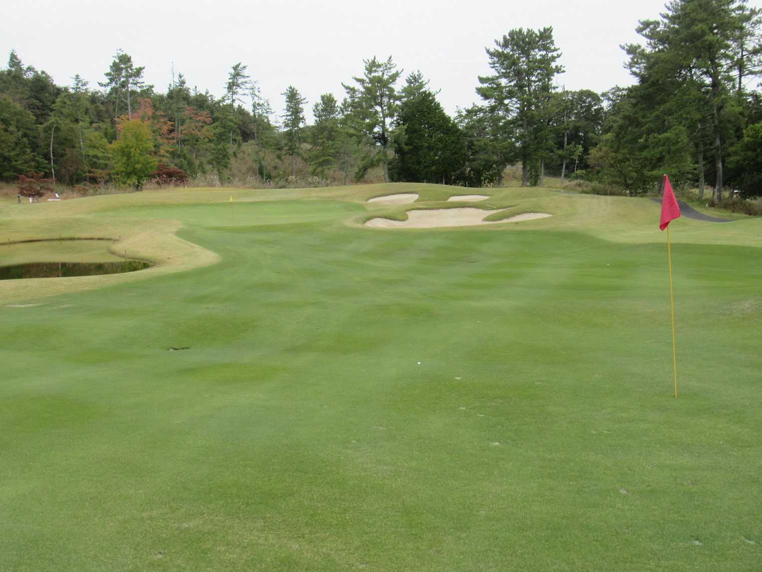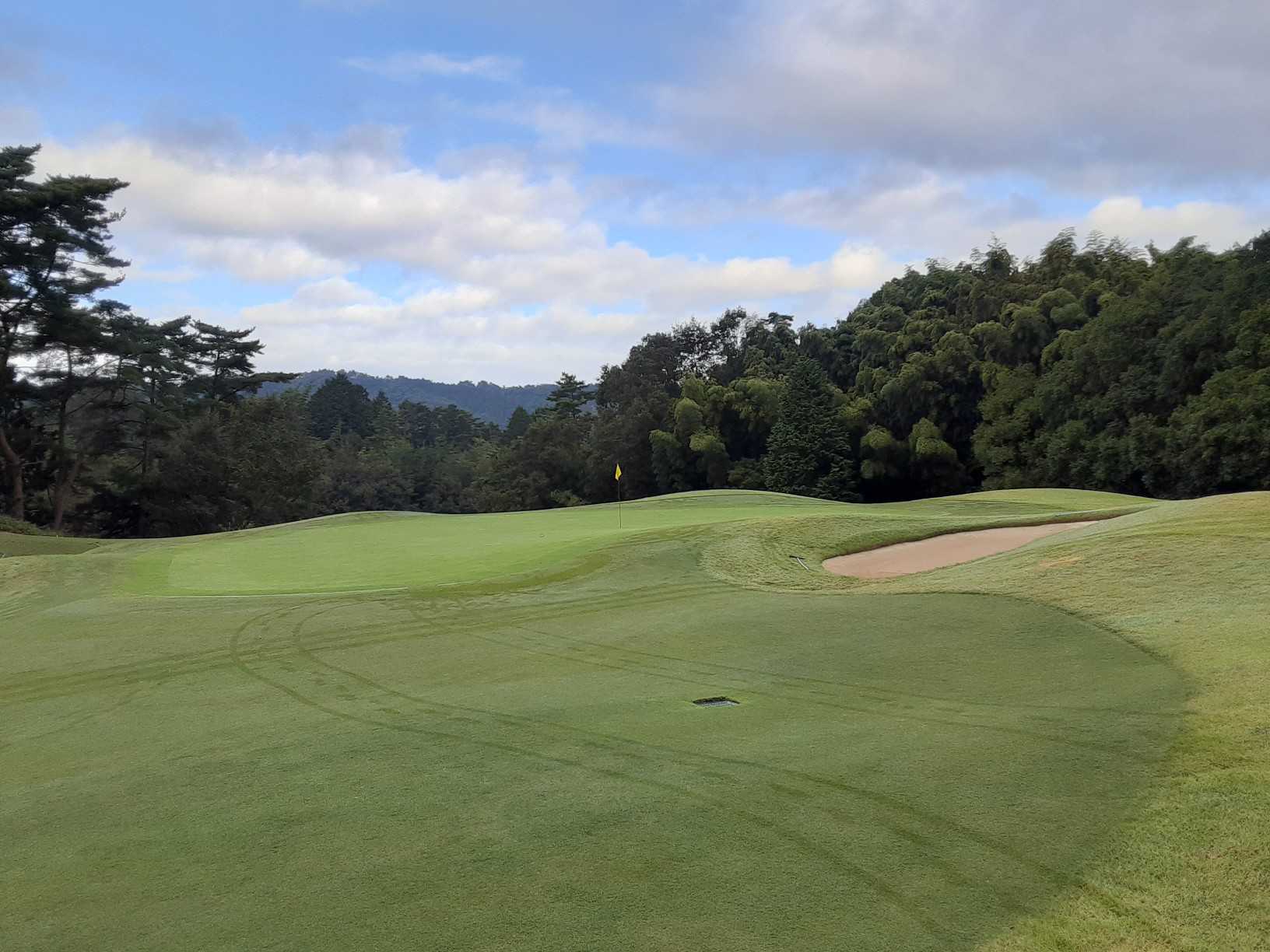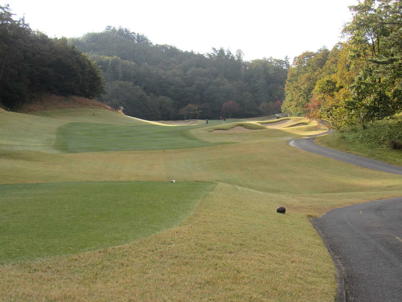 8時半ティオフ❣!メンバーは、Tさん・金さん・あっすん❣❣いつものメンバーです^^スタートホールから、たくさんゴルファーが見えこれは時間がかかるだろうと思った通り前半2時間半。後半は3時間弱。。。ただ待ち時間はしゃべりまくっていたので、あまり気にならず^^Tさんだったか、ホールアウト後、今日はまあまあ順調だったなと^^ま、楽しく過ごせて良かったです❣❣^^天気は最高❣!暑くなく爽やかな空気で、青空に紅葉も少し^^グリーンコンディションも素晴らしい❣❣^^スピード10.5 コンパクション23だったか?明日はクラブ選手権決勝で、きれいに速いグリーンに整備されています。なのに、、、いつもの如くボールマークが、あちこちに・・・さすがゴルフのベストシーズンでした。さて、昨日のゴルフです^^西コーススタート1番ロング480ヤード。ドライバー、ナイス❣!わずかに右バンカー側ファーストカットでしたが、打ちやすい。2打目5Wもナイス❣!と思いましたが、あまり飛んでおらず^^残り110だったと。52度、少し左でしたが、3オン。カップまでは20歩近くあったかな???ファーストパット、まずまずでしたが返しの3歩パーパットよう入れず3パットボギーでした。。。( ノД`)シクシク…せっかく3オンしたのに。。。この1番ロングは、ほんまにパーが取れません(-_-)/~~~ピシー!ピシー!最近では取れた記憶が無いですわ^^