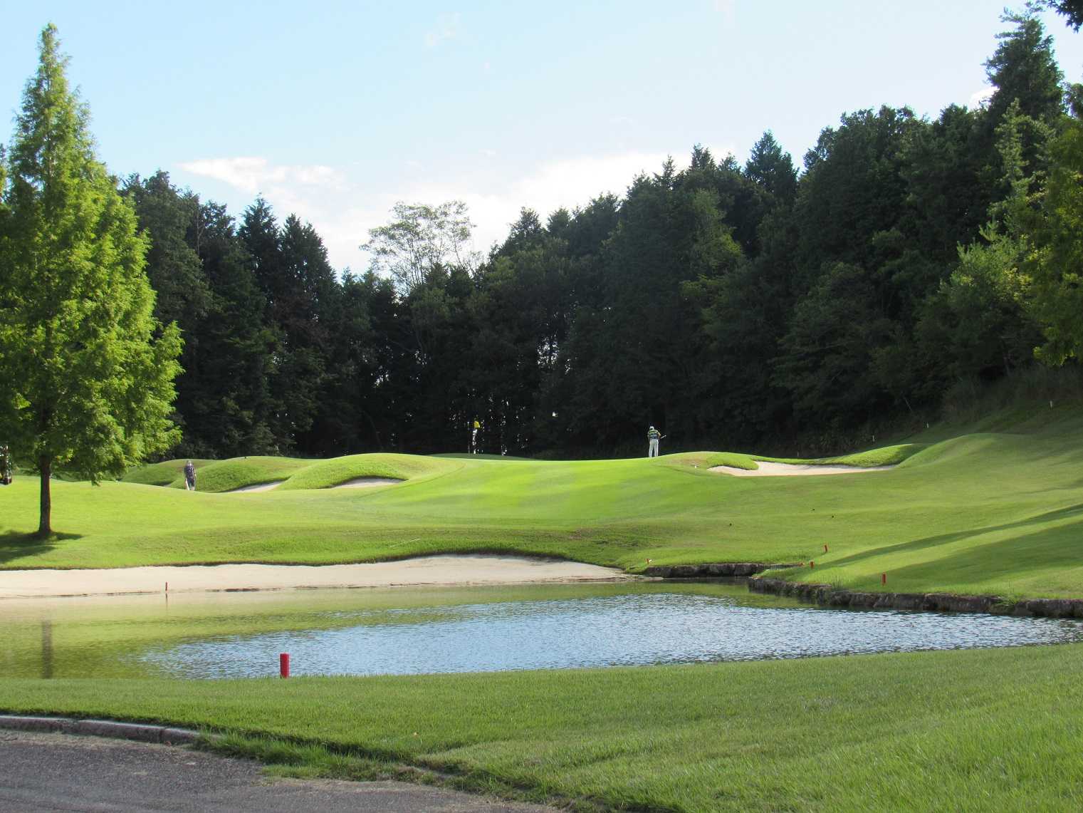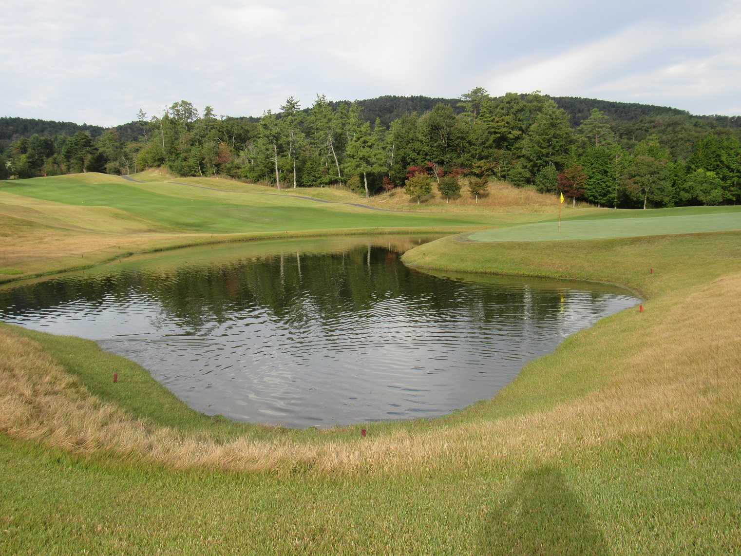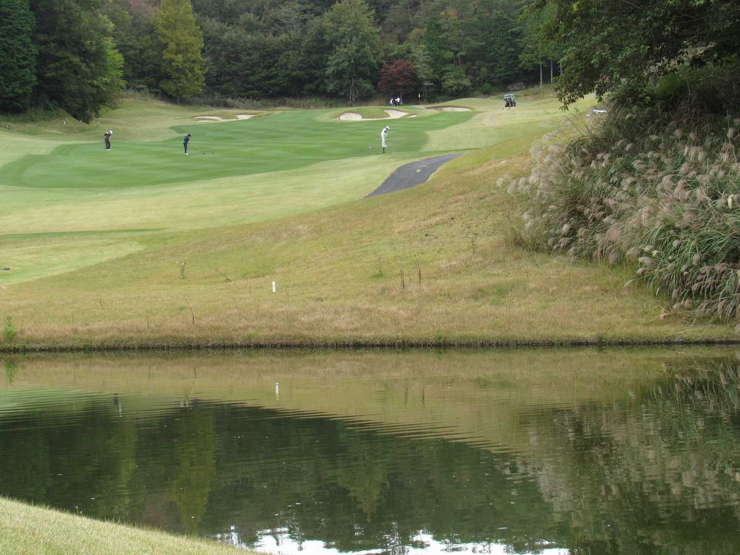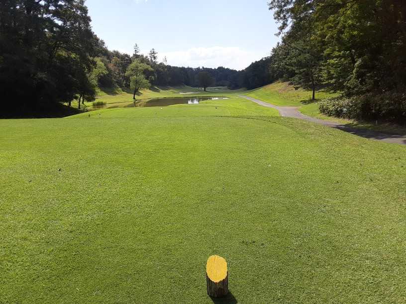 西コース1番ロングは、3オンしながら3パットでボギー。。。2番ショートは、なんかわけのわからない酷い当たりで左斜面ギリギリセーフのラフというか、草原。。。^^2打目、奥オーバーして3オン。2パットでダブルボギー。。。3番ミドル。ドライバー、当たりは良かったですが右。。。OBもあり得ましたがなんとか助かって右斜面ラフ。2打目、まあまあでグリーン右手前横。30ヤードのアプローチでしたが、下り傾斜が気になって。。。ショートして3オン成らず。。。4オンで連続ダボに。。。スタート3ホール、5オーバーとあらら。。。って感じでした(-_-)/~~~ピシー!ピシー!写真は、1番前の池です。。。