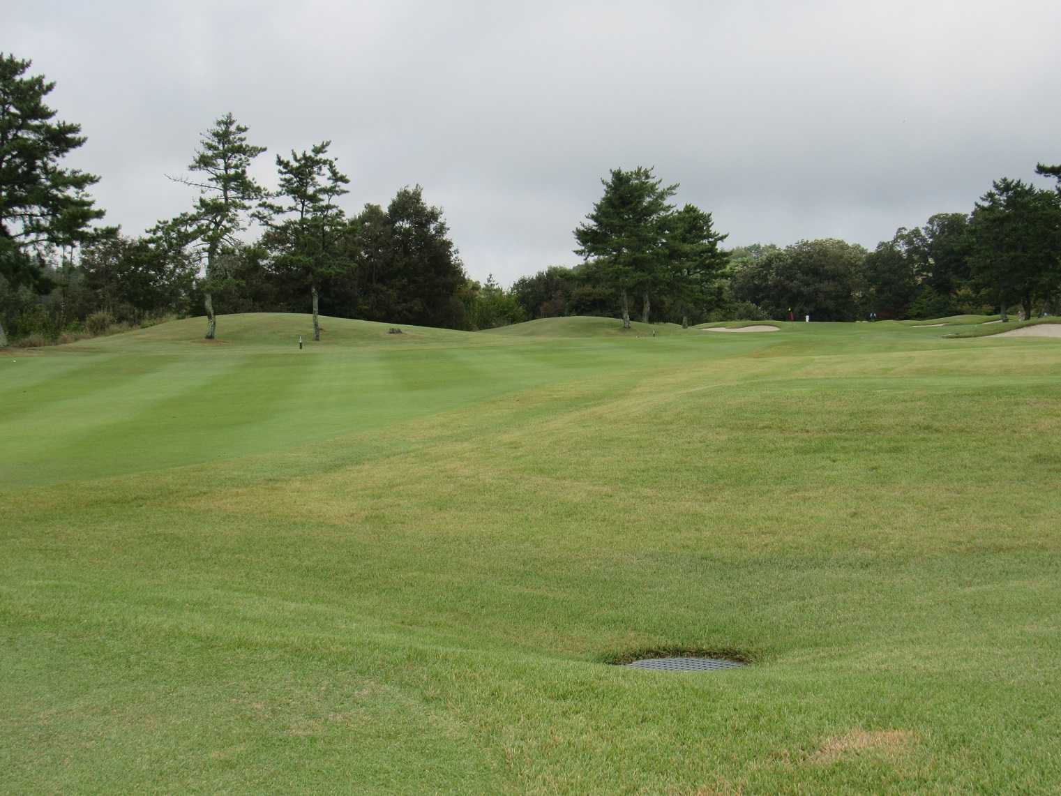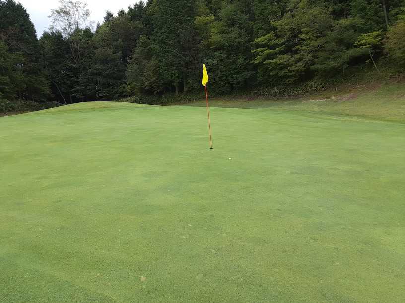 西7番ロングホール。距離はないんですが、ティショット打ち下ろしの後打ち上げで砲台グリーンは縦の幅がせまく易しくないです^^ドライバー、少し左でラフ。2打目5Wナイスで上記写真。残り80ヤード打ち上げ。3打目がナイス❣!ボールも止まって、チャンス❣❣^^残念ながら、3歩くらいのバーディトライ入らずパーでした。