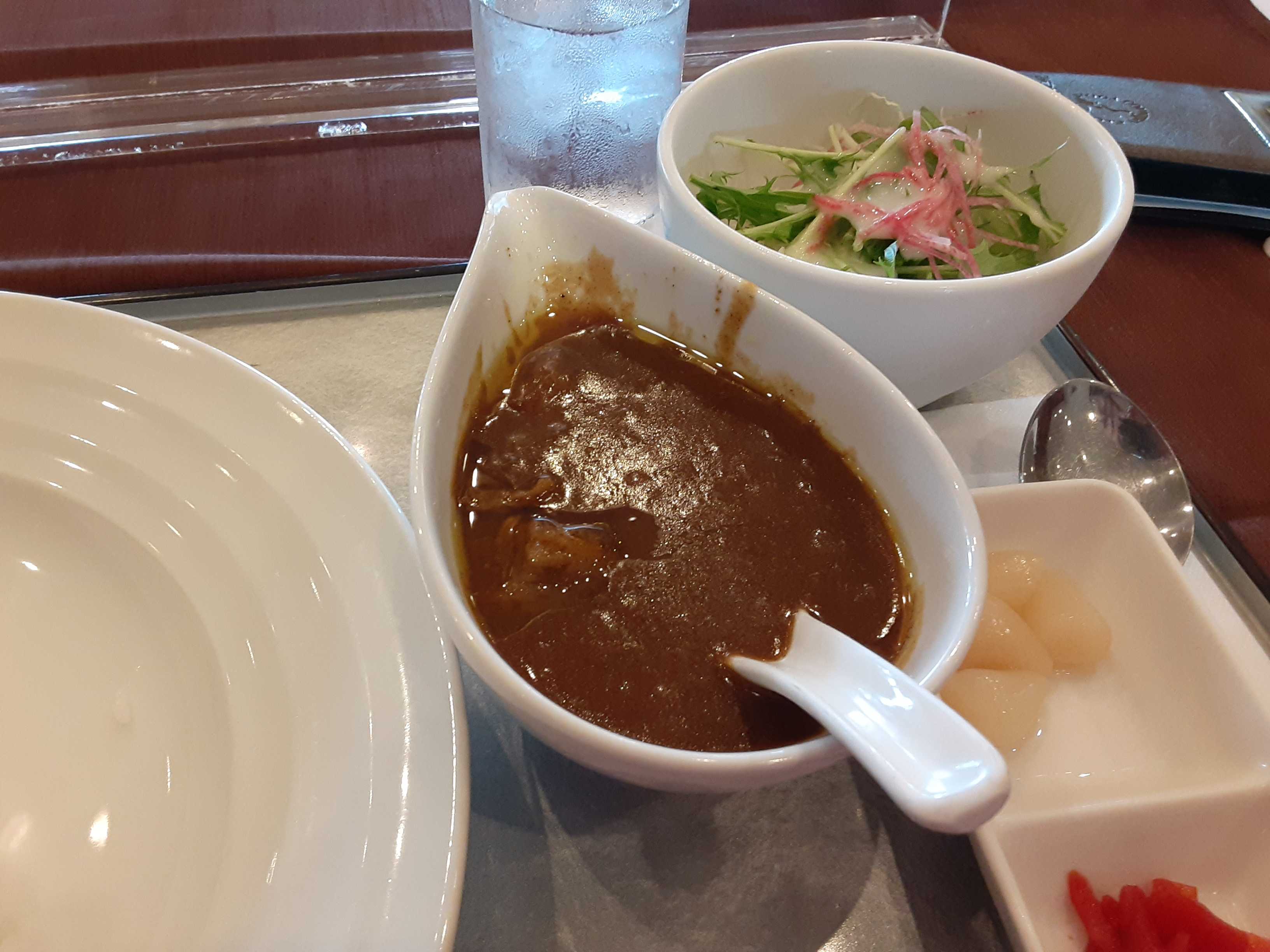 ランチに行きました。海老フライとお肉のランチ。ハンバーグが一番の売りなのかな?わざわざハンバーグはついてませんよと確認されました^^すぐにサラダが運ばれてきました。若干、忙しそうでした^^宮崎牛や鹿児島黒牛のポスターが貼ってありました。ランチのこのお肉がどこのお肉かは、知りませんが^^けっこう良いお肉なような。ただ、少し焼きすぎの感が。。。^^中の赤い部分は、けっこう美味しかったです。でも、2200円(税込み)なので、まあ、それなりです^^海老フライは美味しい❣!ただ、有頭ではない。。。^^今度は、ハンバーグとエビフライを食べようと思いますがいつ行けるやら???^^