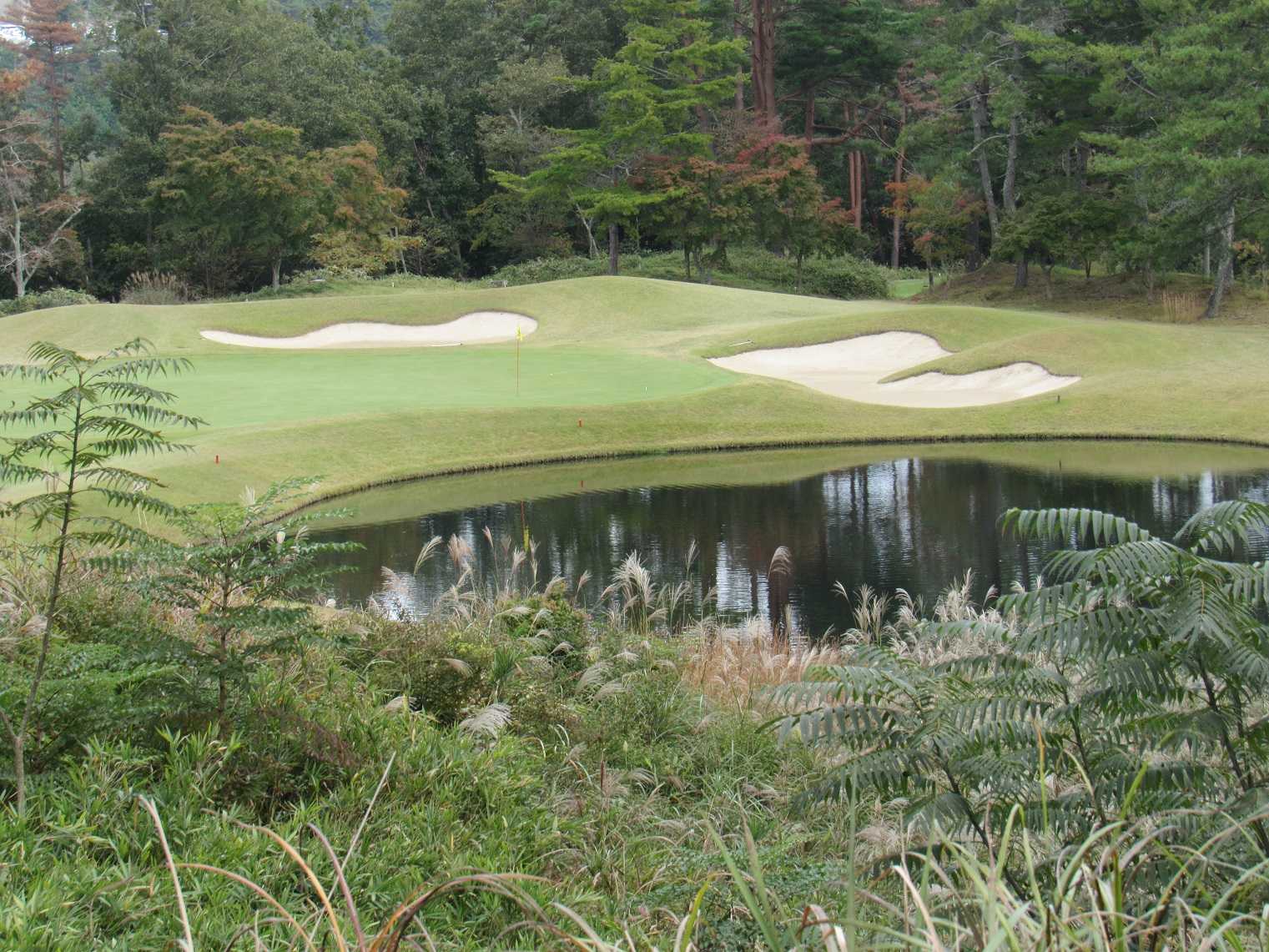 1番はボギー。2打で、そこそこ良いところへ持っていけましたが40ヤードのアプローチが、少し右へずれ3,4歩のパーパット外しました。。。^^Tさんは、10歩以上の下りパーパットを見事にカップイン❣!寄せワンパー。あっすんは、ナイス2オンでパー❣❣金さん、惜しくも寄せワン成らずボギー。2番ショートホール147ヤード打ち下ろし。小雨もあり、アゲインストで気温も低く、飛ばないと思って大き目の8番アイアンを持ちましたが、ナイスヒット❣❣^^きれいに打てたら、飛びすぎて奥オーバー。。。バンカーでした^^バンカーショット、まあまあでしたが、ここも4歩くらいのパーパット入らずボギー。。。あっすんは、手前カラーにナイスオンで、連続パー❣❣Tさん、金さん、寄せワン成らずボギー。12番ロング。ドライバー、Tさんがドラコン❣!私もナイスでフェアウエイでしたが、距離出ておらず^^2打目7Wだったか??少し右でしたが、まあまあ。150ヤード(エッジまで、カップ位置20くらい奥??で180くらい)手前に刻めばいいと7番アイアンにしましたらこれが出ました。。。シャンク。灯篭のある名物バンカーの水たまりに。。。( ノД`)シクシク…4打目バンカーショット、ノーグッド。5打目アプローチ、左でカラー近く。なんとか寄せワンでダボでした。ドラコンだったTさん、アプローチでミスしてダボ。ドライバー、ミスしてかなり手前左ラフだったあっすん、其の後取り戻してダボ。金さん、短いボギーパットを外してダボ。。。結局、全員ダブルボギー。。。( ノД`)シクシク…ラウンド前には、全員がパーを取ったら、記念撮影をしようと思っていたのですが。。。今日は、みなさんボロボロでした^^写真、ありません・・・