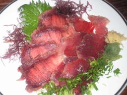 週末、日頃楽しくお付き合いしている仲間との忘年会でした長男と娘は、同級生で忘年会のメンバーでもある私の友人のおばあちゃん家に招待され、お泊り(子供同士も超仲がいいんです)末っ子はだんなとお留守番だんなは大学時代の友人が近くの旅館に家族旅行で来てるとの事で私が留守なのに我が家へご招待なんて言い出すから、手土産とお茶菓子などなど用意して出かけましたっ(笑)さてさて、思ったよりきれいなお店で一安心なんてったって前評判が「亀の刺し身が食べられるお店」でしたからね~!!!!!店内を見回したらありましたよ~!!本日のおすすめ”亀刺し”(~o~;)当然頼みました(爆)あ~よかったよ。見た目は普通!!亀の甲羅に乗っかってきたらどうしようかと思ってましたよ(でもちょっぴりがっかり 笑)言っときますがこれ、すっぽんではなくうみがめですよお味は”歯ごたえのある馬刺し”って感じですかね「今ごろひと恋か~」なんて思いながら生かめ食っちまいました(爆)さすがに亀ちゃんのお顔想像しながらは食らえませんでしたわっっ2次会ではジンと行きたい所でしたがカラオケスナックみたいなところだったのでジン却下(涙)。仕方なくずっとビール飲んでました~(笑)そこで僕街歌ってきました!!KAT-TUNごめんなさい。私とした事があまり聞き込んでいなかったせいかひと恋エンディング以外のメロディあやふやでした。。