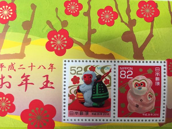 お年玉付き年賀はがきの当せん番号を照合し、今年も3等のお年玉切手シートのみ6枚入手。52円切手と82円切手それぞれの解説を雑学として、日本郵便HPより引用して以下ご紹介。☆52円<大津絵十二支土鈴(おおつえじゅうにしどれい)「申(さる)」(滋賀県)> 滋賀県の大津に伝わる伝統的な民画である大津絵の中から、十二支を取り上げているものを題材として高田進(たかだすすむ)氏が制作した郷土玩具。切手の意匠には、提灯と釣鐘を前後に吊るした天秤棒を担ぐサルの土鈴を採用。天秤の傾きは、軽いはずの提灯が下がり、重い釣鐘が上がっていますが、これは重んずべきものを軽んじ、道理が転倒している世の中を風刺したものとされている。☆82円<土佐和紙漆喰張り子(とさわししっくいはりこ)「こだき申(さる)」(高知県)> 1993(平成5)年を最後に製作者が途絶えていた「香泉人形(こうせんにんぎょう)(※)」を復活させるため、2002(平成14)年からこれに取り組んできた草流舎(そうりゅうしゃ)の田村多美(たむらたみ)氏が「香泉人形」の形を参考に制作した郷土玩具。和紙を何重にも張り重ね、自作した独自の漆喰絵の具で彩色。張り子の中には、おめでたいといわれる無患子(むくろじ)の実が入っており、振るとカラカラと素朴な音がする。※制作者の「山本香泉(やまもとこうせん)」からとった名前で、初代「山本香泉」は、高知出身の女流画家で戦後高知に戻り、土人形や張り子などいろいろな郷土玩具を創作。 Written by 人力車の博多人力屋 以下のリンクをクリックして下さると、一票投票されて人気blogランキングに反映されるシステムになっています(一日一票)。毎日更新の励みになります。→人気blogランキング<起業・独立部門> ご支援クリックいつもありがとうございます!ただいま48位に。